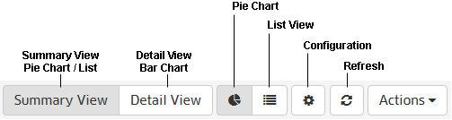Analytics Reports can be viewed in different formats (e.g., pie chart, bar chart). You can also configure a custom view to change the amount of information displayed (e.g., the number of Applications/Clients displayed), as well as the timeframe that you want to view (e.g., last 24 hours, last 7 days). You can also view data trends by "drilling down" in a Detailed Report. You can also print a report or download a report in PDF or PNG format, and even include the data as part of a scheduled report that is automatically generated in the Report Application. These options can be configured using the Options Bar (shown below) displayed at the top of every report.
