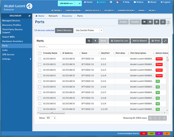 Clicking on the Tabular View button takes you to the Ports Screen (Network - Discovery - Ports), where you can view detailed port information for all network switches.