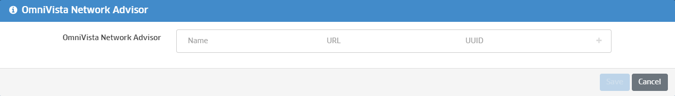 Network Advisor instances are declared in OmniVista Cirrus by clicking the "More" link on the OmniVista Network Advisor widget to open the OmniVista Network Advisor dialogue window. Complete the fields as described below for each Network Advisor instance that you want to declare, then click + to add the instance to the list: