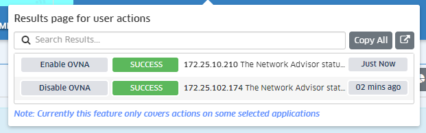 When you enable or disable Network Advisor monitoring for a device, the Results page displays the status of the requested action.