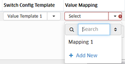 A Dynamic Template requires value mapping for the variables in the template. Value Mapping is configured using the Value Mapping field in the Rules List. If the Configuration Template you selected contains variables, the Value Mapping field for the Rule will be activated. If you have already created a Value Mapping Template that you want to associate with the Dynamic Template, select it from the Value Mapping drop-down (e.g., Mapping 1).