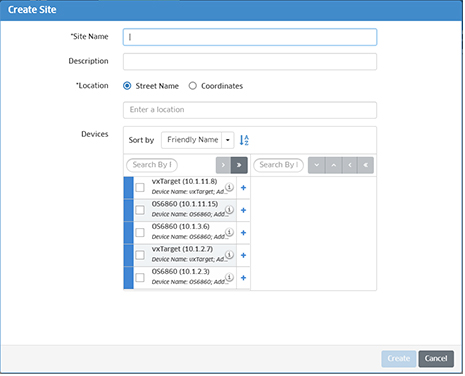 Note: Remember that a device can only belong to one Site or Sub-Site at a time. If you are planning on creating Sub-Sites within a Site, it is recommended that you create a Site without assigned devices, then assign devices when you create the Sub-Sites (e.g., Floor 1, Floor 2).