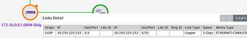 Manual links are displayed as a dashed line if there is a single manual link or if there are multiple links and all of the links are manual. If there are multiple links and at least one is not a manual link, the link is displayed as a solid line. Aggregate links are displayed with an ellipse. Multi-Chassis links are displayed with a black border on the outer edge and an ellipse.