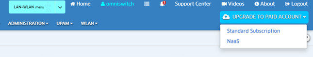 1. Log into your OmniVista Cirrus Account and click on the UPGRADE TO PAID ACCOUNT button at the top of the screen and select the NaaS option.