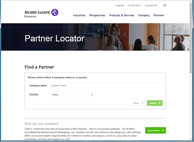 2. Click on the "Find a Business Partner" link to locate and contact a Business Partner to set up your OmniVista Cirrus Subscription. The Partner Locator website will appear.