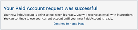 The following two options are available for upgrading to a Paid Account, based on the type of account you are currently using: