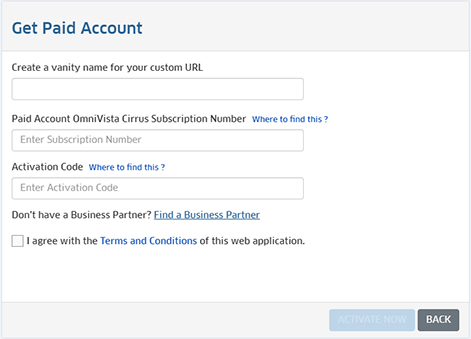 After your OmniVista Cirrus Subscription is set up, you will be assigned a Subscription Number and Activation Code by your Business Partner to upgrade to a Paid Account.
